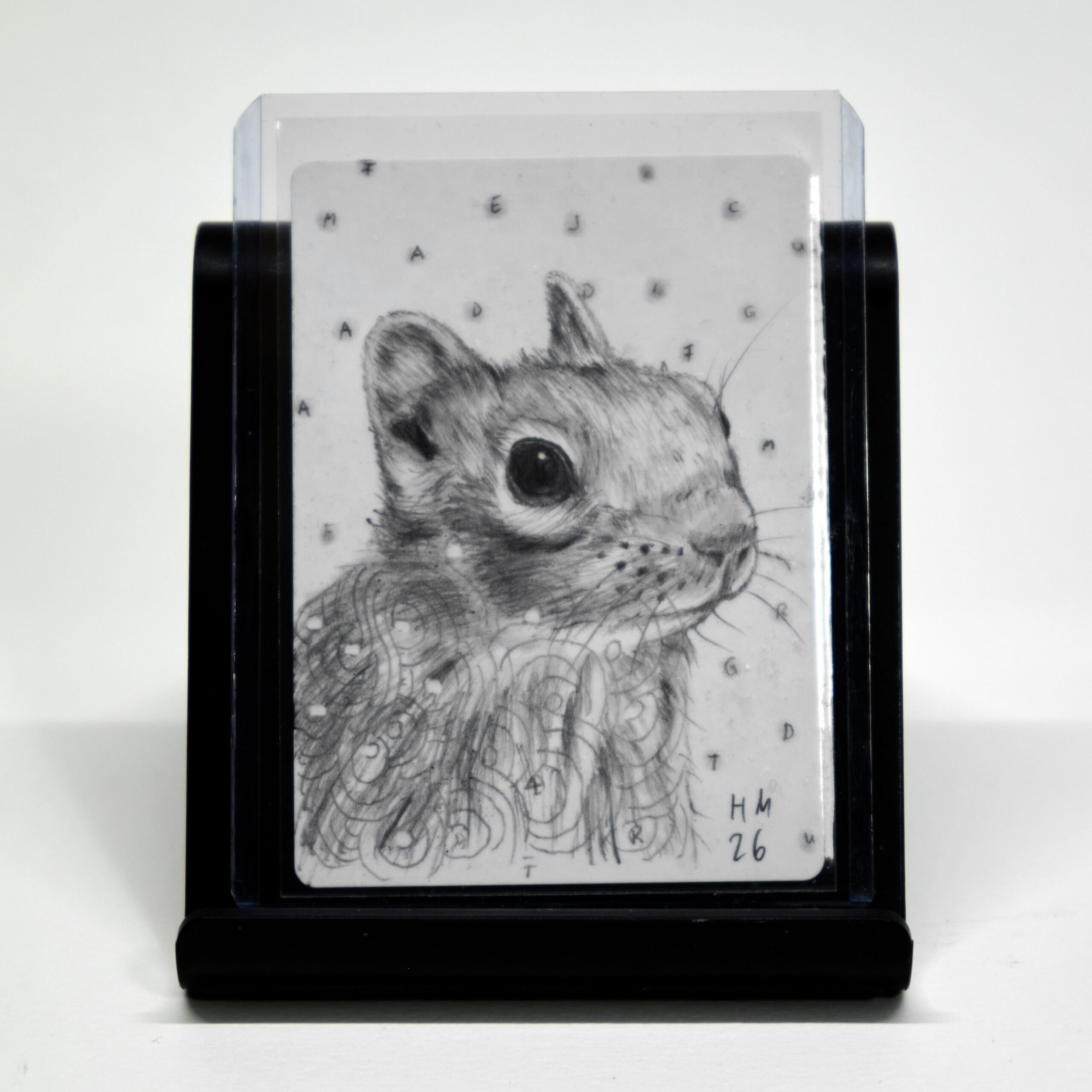 Original pencil drawing by the artist on the back, signed on the front of the card